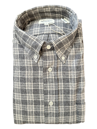 Hartford Cotton Flannel Shirt Grey/Ivory Plaid