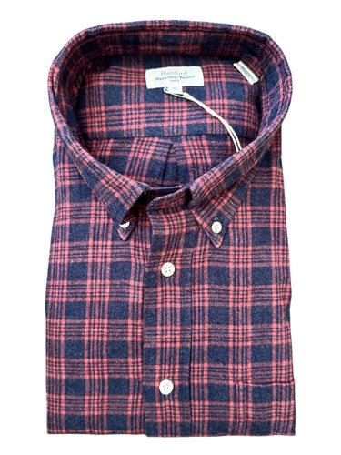 Hartford Cotton Flannel Shirt Navy/Red Plaid