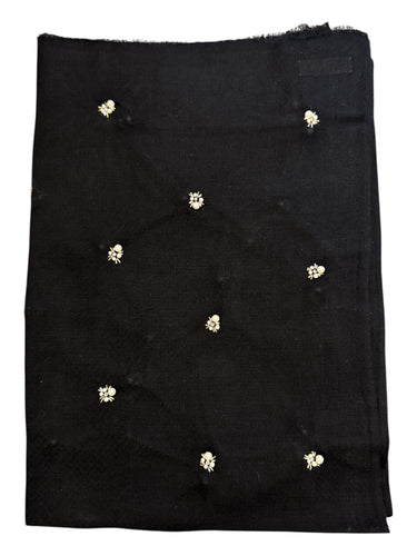 Janavi Merino Wool Shawl w/Pearl Clusters Dispersed on Black