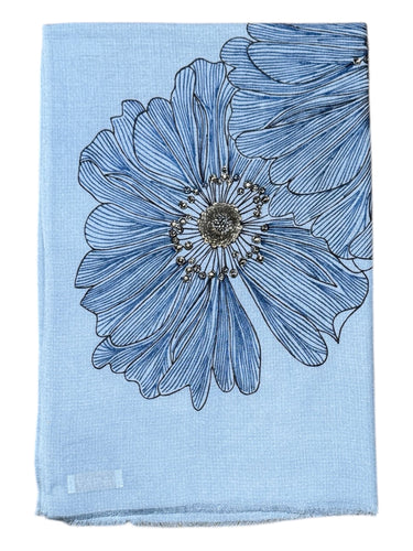 Janavi Merino Wool Shawl w/Large Embroidered Flower Blue