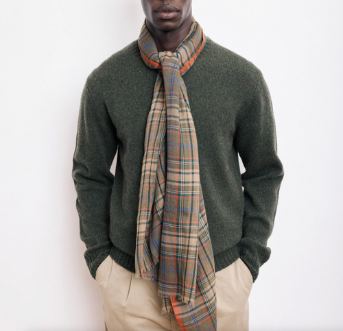 Hartford Long Rectangular Woven Wool Scarf Green/Orange