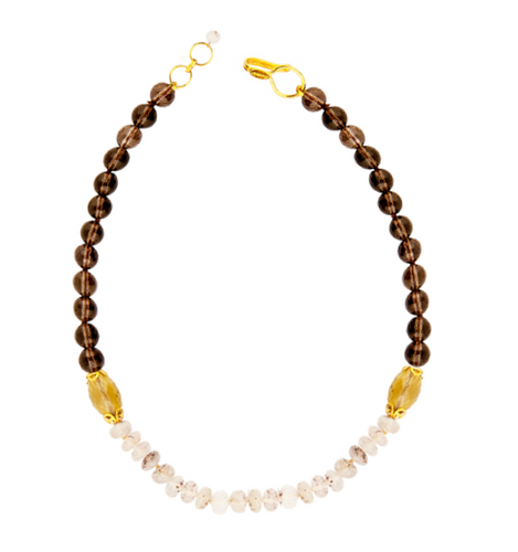Bounkit Necklace with Smokey and Lemon Rutilated Quartz