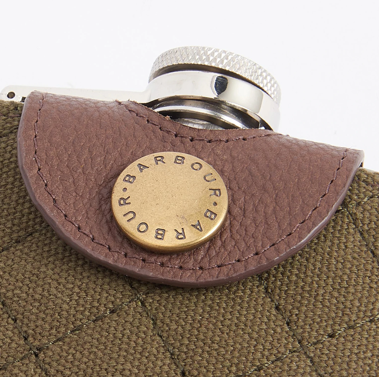 A perfect gift, the Barbour Padbury Quilted Hip Flask is made from durable stainless steel with premium leather and quilted canvas case with a practical hinged screw-fastening lid. Complete with a Barbour branded press stud to finish.