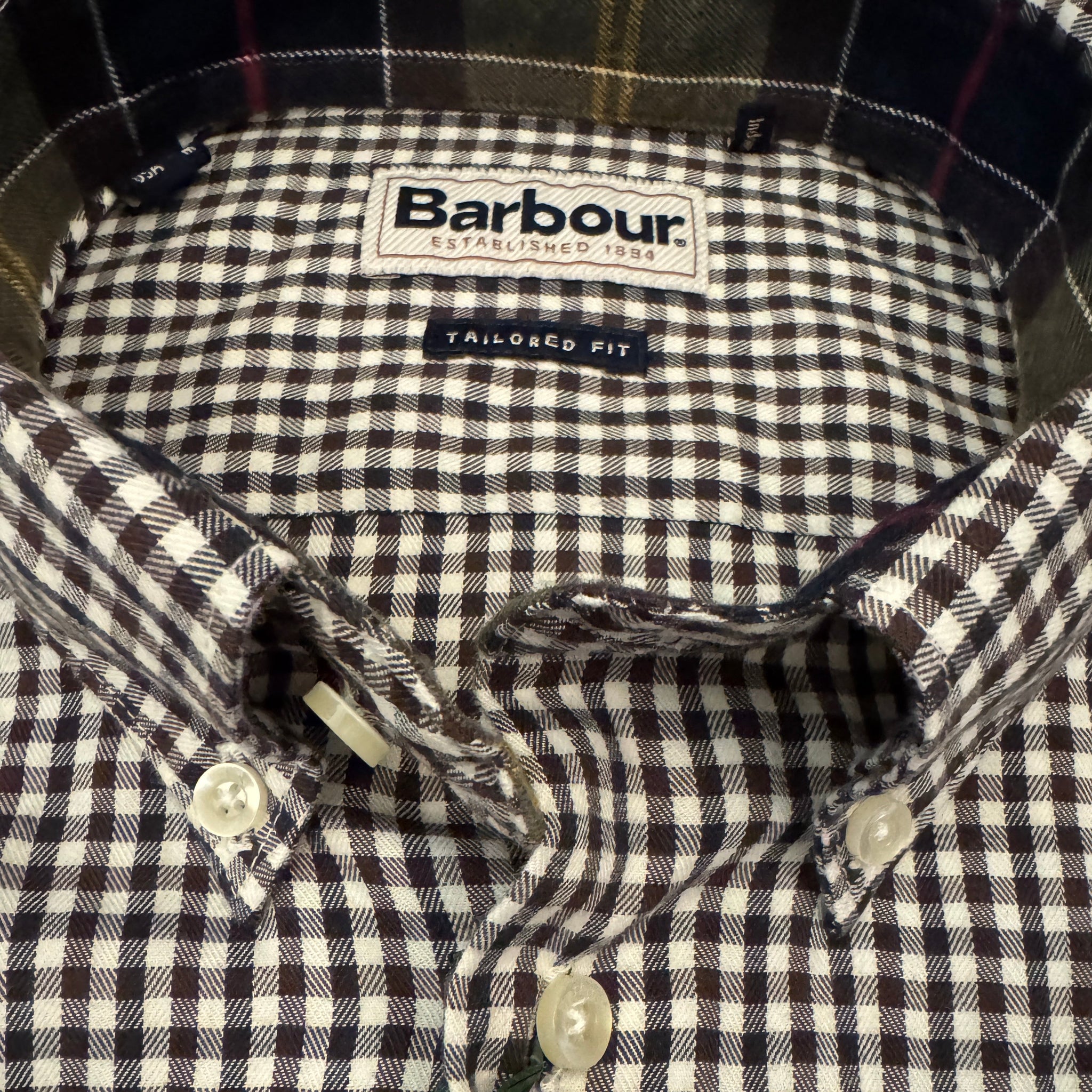 The Barbour Padshaw shirt is cut to a tailored fit for a smart casual staple. Featuring a broken twill gingham design, this shirt boasts a Barbour tartan trim to the inner collar stand and inner cuffs for subtle sophistication. The gingham is comprised of intersecting stripes of dark olive and burgundy.