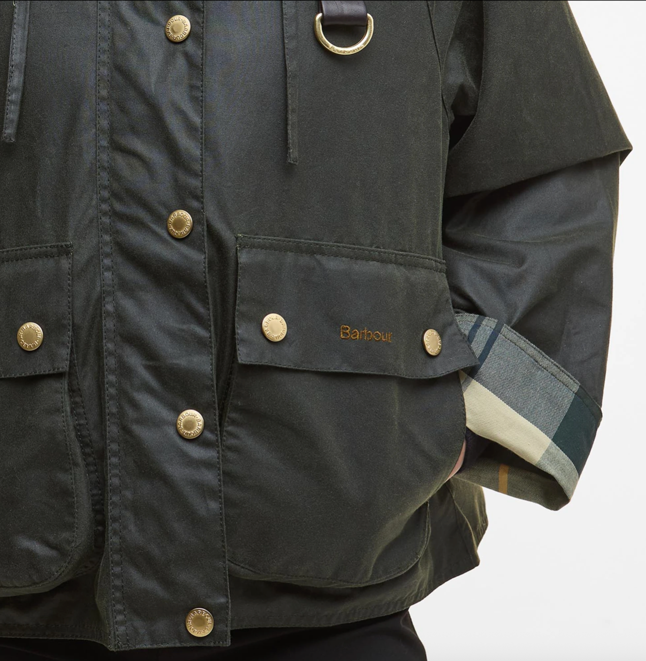 Inspired by our most-loved, archive Spey Waxed Jacket, the Barbour Reighton Spey Waxed Jacket showcases all of the classic details such as the D-ring tab to the chest and a fixed hood. Complete with an oversized cord collar for a contemporary finish and tartan trims to the cuffs for a playful finish.