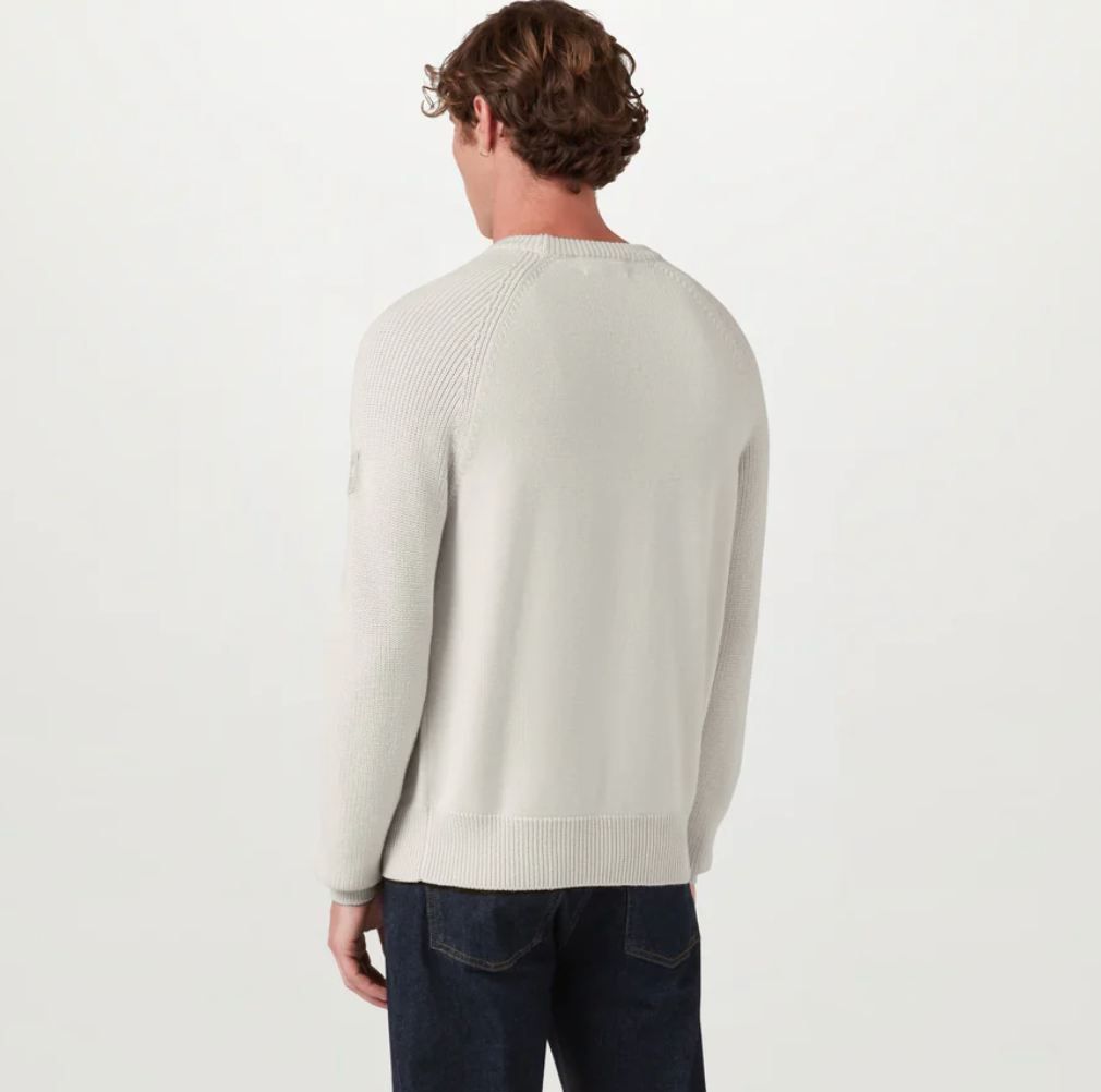 The sweater is your first line of defence against the cold. Our men's Aspect crew-neck jumper in Silver Birch is crafted from 5-gauge extra-fine merino wool, which has incredibly fine fibres, making it exceptionally soft and warm to wear.