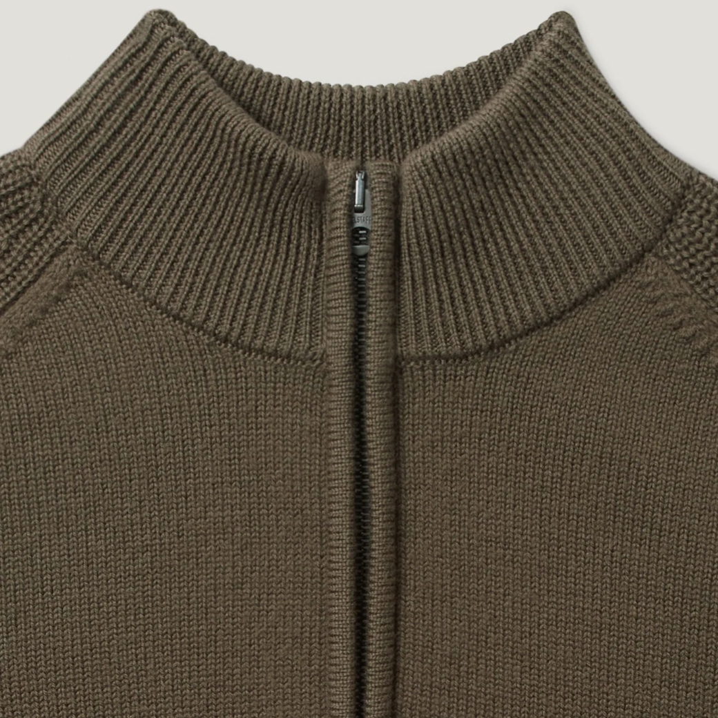 The sweater is your first line of defence against the cold. Our men's Aspect quarter zip jumper in Major Brown is crafted from 5-gauge extra-fine merino wool, which has incredibly fine fibres, making it exceptionally soft and warm to wear.