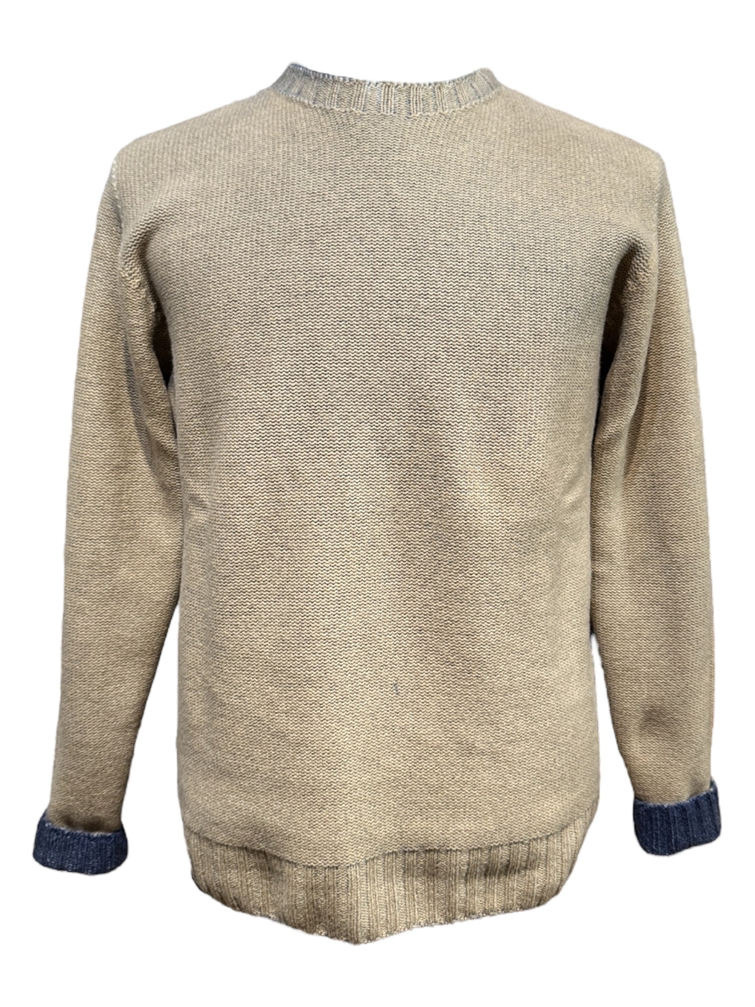 A classic wool crewneck sweater garment dyed on each side to make this a vintage looking comfy and warm reversible sweater.