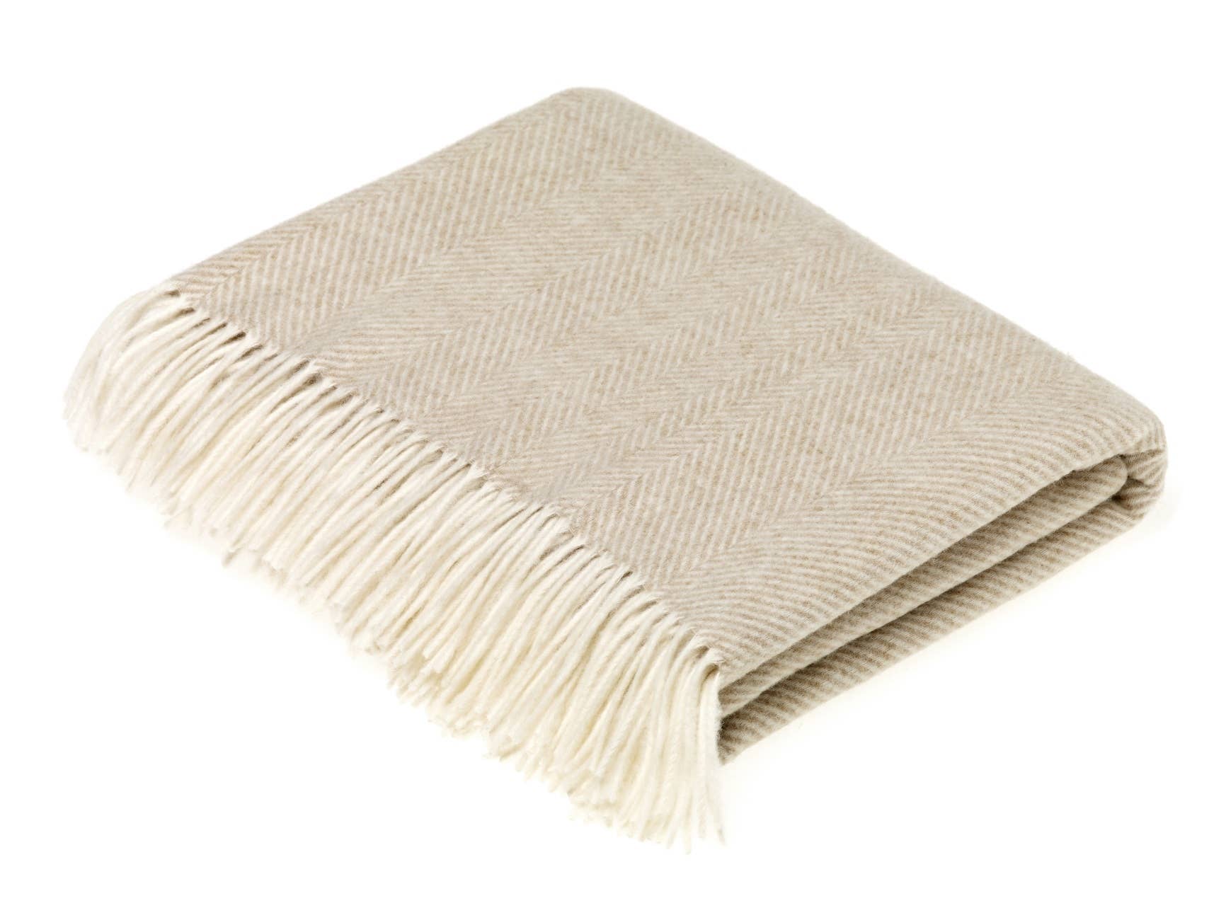 Stylish designs have stood the test of time, including the best-selling herringbone. Each design has been woven in a choice of contemporary Grey or Beige. Our Merino Lambswool products are renowned for its supremely soft handle. These wool fibers arrive at our mill with less than 0.3% impurities (i.e dirt!) after being scoured at the farms; the fully woven throw is then washed again at the end of our making process using pure Yorkshire water to enhance this luxuriate Quality.