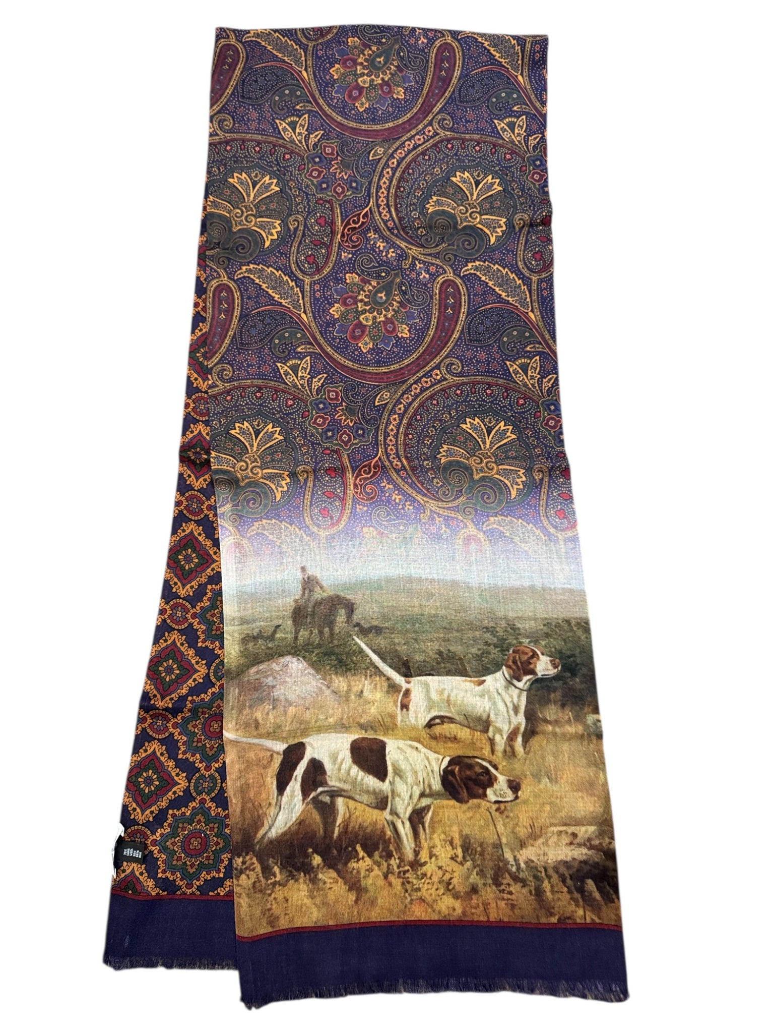 Calabrese created these gorgeous wool and silk scarves that will keep you looking stylish as the weather turns cool. Perfect long silk scarf for draping over your shoulders to add some fall color to your outfit. Double loop and tie around your neck or tie in a big bow for a chic stylish look. One side has a large design, while the other has a smaller colorful print.