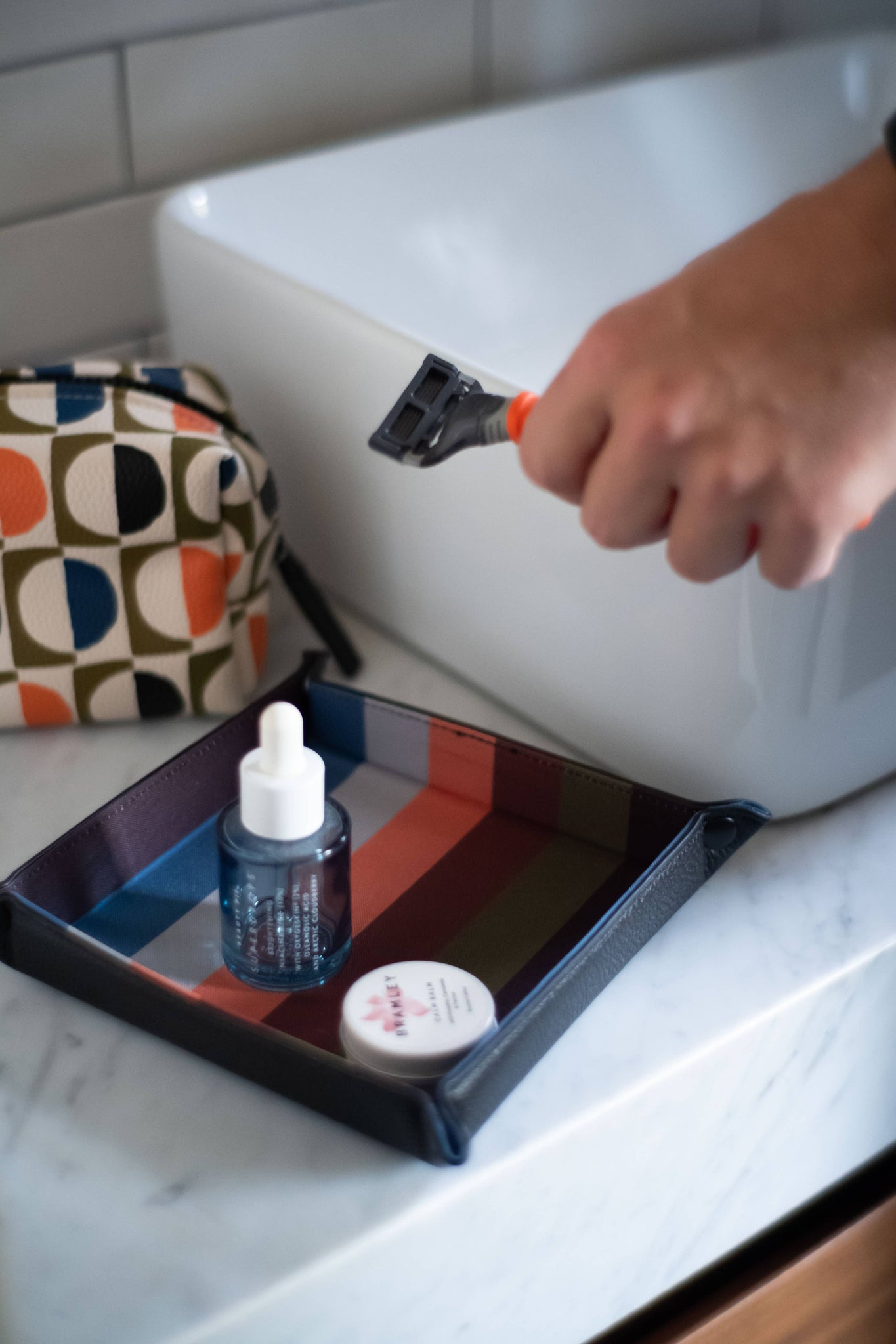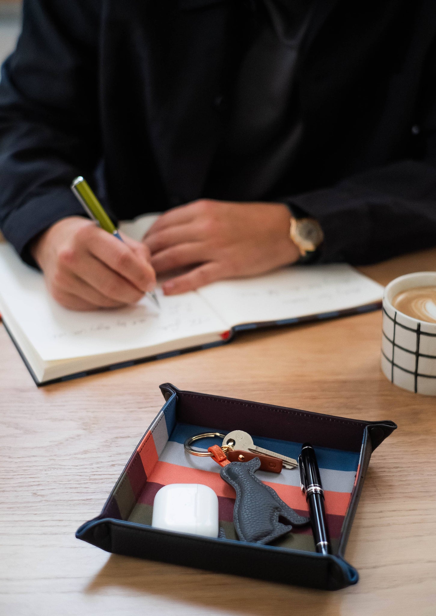 Stay organised in style with the tidy tray. Crafted from vegan leather with decorative signature corner stud rivets and lined in luxurious custom printed canvas lining, it's a must-have piece for the contents of your pockets or everyday jewellery at the end of the day. Perfect for the home or office. Materials PU; Polyester Lining