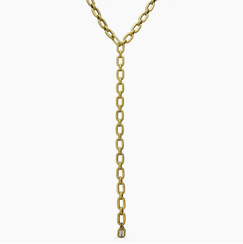Make a striking statement with this elegant gold chain lariat necklace. Featuring bold, oversized links in a sleek gold-plated finish, this necklace exudes modern sophistication. The long lariat design is effortlessly versatile, while the single sparkling cubic zirconia drop adds a refined touch of glamour. Perfect for layering or wearing as a standalone piece, this necklace transitions seamlessly from casual chic to evening elegance. A modern classic that elevates any look.
