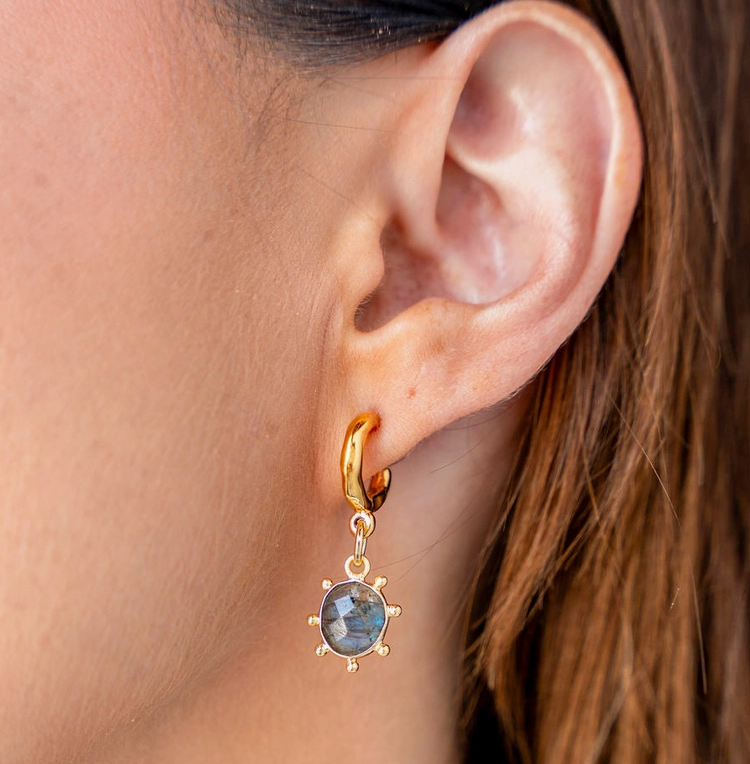 The labradorite shifts in color as you move, with hints of blue, green, and gray — always subtle, never loud. These earrings are your go-to for when you want a little bit of presence, no effort required.